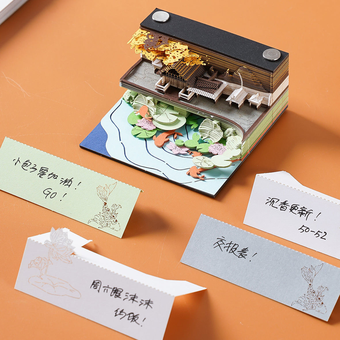 Each memo pad arrives as a complete set of perforated sheets, ready to reveal its sculptural magic. Simply tear along the precision-cut perforations sheet by sheet to gradually unveil the full 3D model. This thoughtful design transforms the everyday act of note-taking into a delightful discovery—each page you use reveals another layer of the intricate scene. Perfect for those who appreciate functional art that rewards patience and attention to detail.