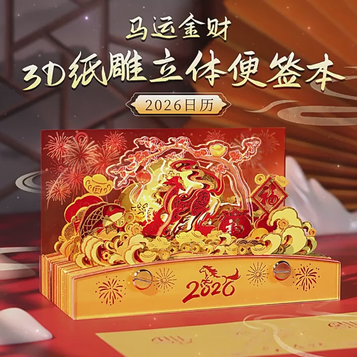 Horse Gold Fortune 3D Memo Pad - Daily Calendar 2026
