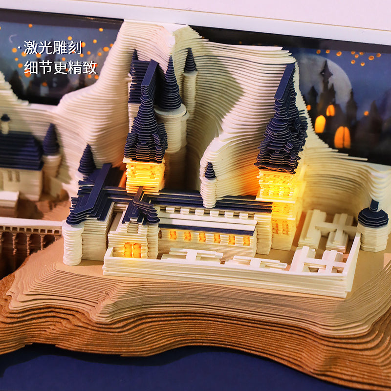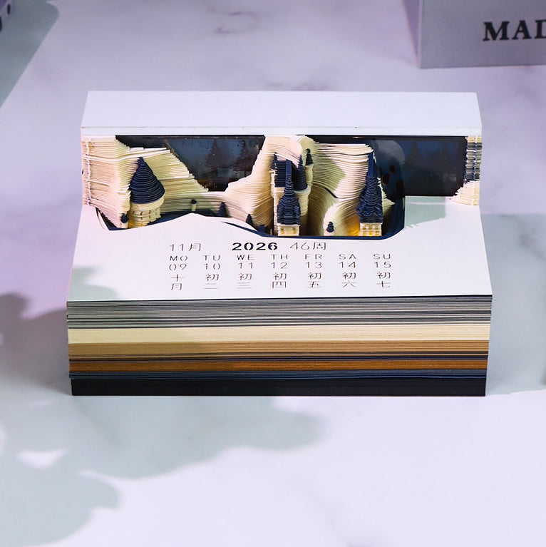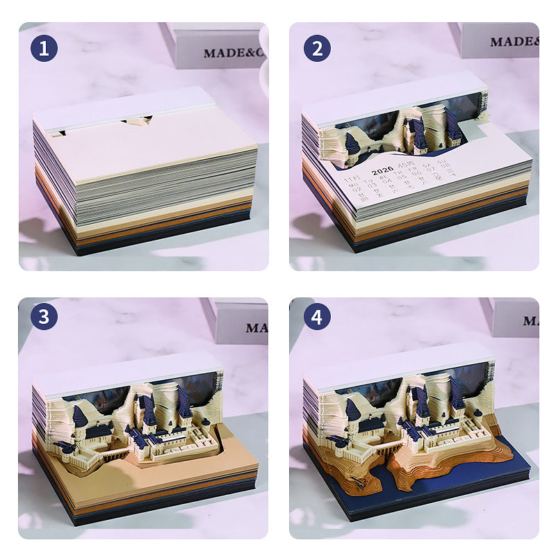Each memo pad arrives as a complete set of perforated sheets, ready to reveal its sculptural magic. Simply tear along the precision-cut perforations sheet by sheet to gradually unveil the full 3D model. This thoughtful design transforms the everyday act of note-taking into a delightful discovery—each page you use reveals another layer of the intricate scene. Perfect for those who appreciate functional art that rewards patience and attention to detail.