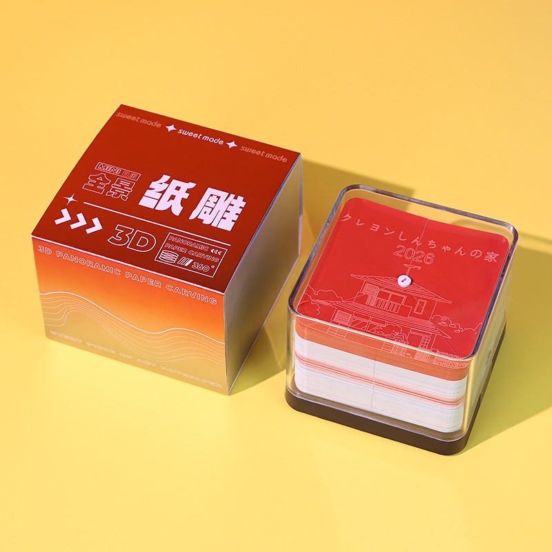 Each memo pad arrives as a complete set of perforated sheets, ready to reveal its sculptural magic. Simply tear along the precision-cut perforations sheet by sheet to gradually unveil the full 3D model. This thoughtful design transforms the everyday act of note-taking into a delightful discovery—each page you use reveals another layer of the intricate scene. Perfect for those who appreciate functional art that rewards patience and attention to detail.